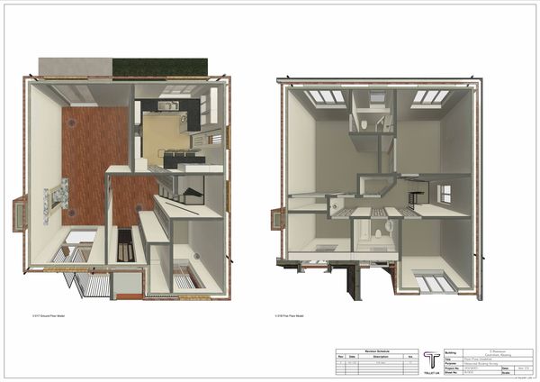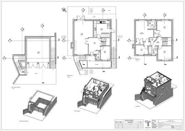 Plans are extracted from the Revit model and presented in a standardised 2D paper plot format for discussion with Clients.
